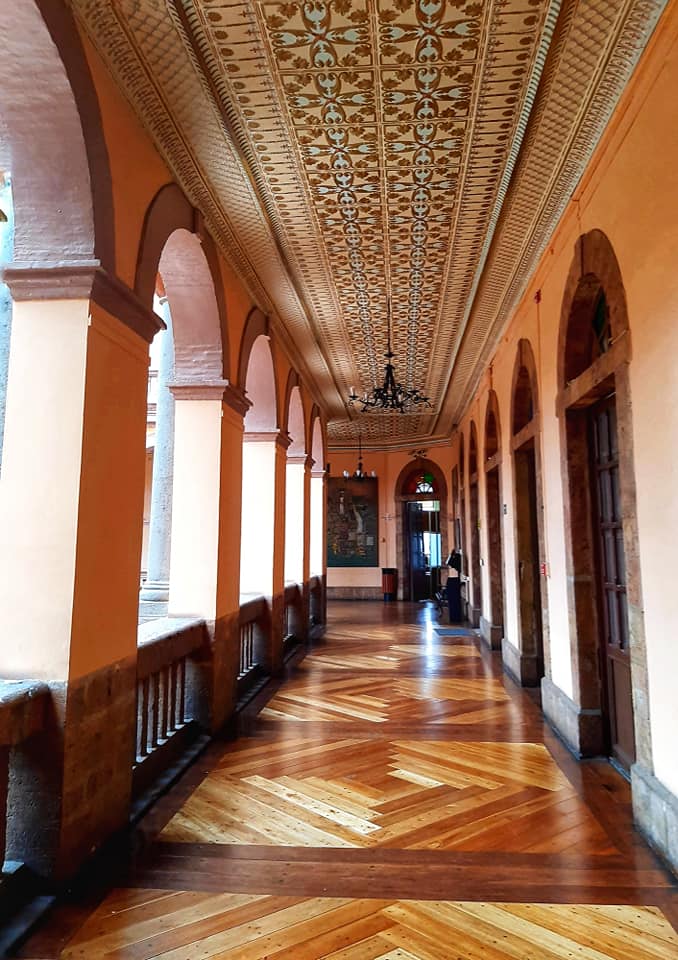 Located beyond the entrance hall is a central courtyard, with interior spaces of three levels of porticoed galleries. The courtyard serves an additional function as the foyer to the old University Theatre known as the Sucre Theatre, which is also accessed from an alley-way off Sucre Street.