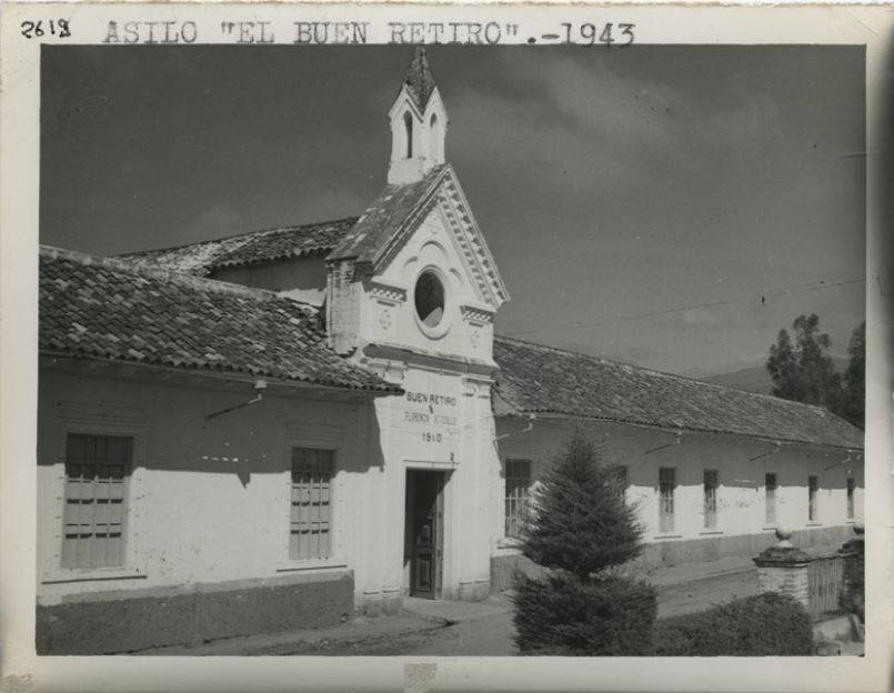 This building was erected in 1876 under the order of Bishop Miguel León to provide shelter for the alcoholics in the city and province, for their rehabilitation and cure. The design is attributed to the German Redemptorist monk Juan Bautista Stiehle, who worked with the bishop on other projects in the city. The entrance is located at the center of the building – a large rectangular door framed by moulding and a pointed arch.