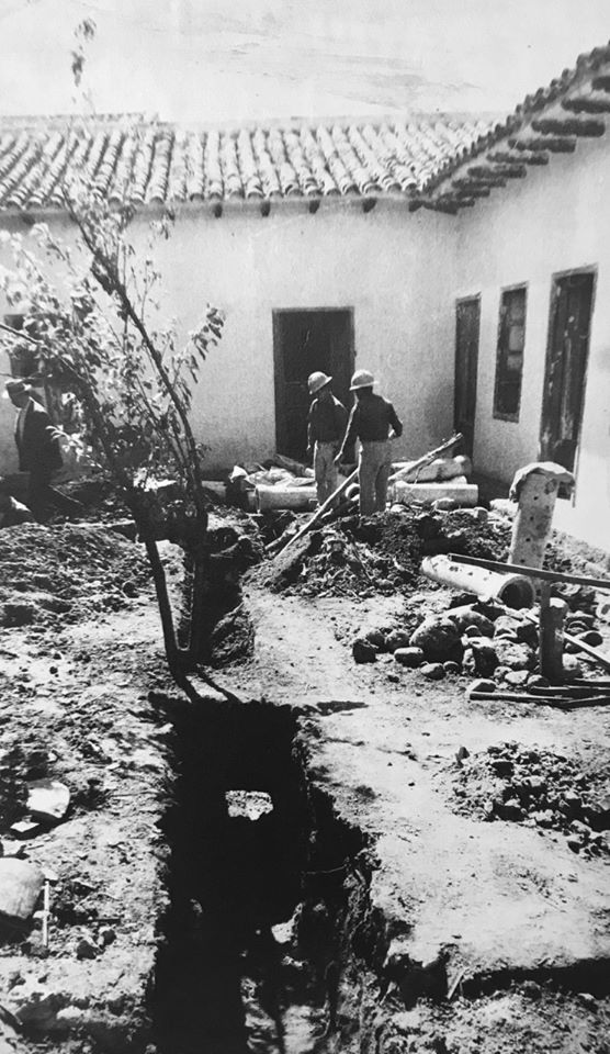 The adobe building with traditional tile roofs, has two large courtyards with gardens.