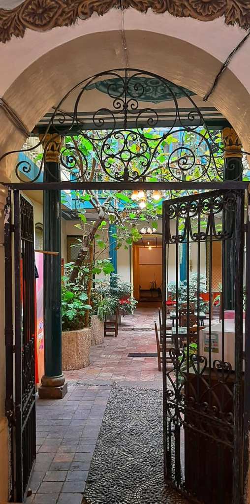 The gate opens to a very lovely garden cafe in the middle of Cuenca’s historic El Centro district.