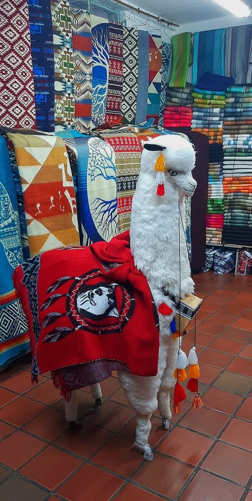 The Plaza de San Francisco Market is a wild colorful combination of weaving, basketry, ceramics, ironwork, wooden utensils, kitchen cups and plates, pots, plastic trinkets, religious paraphernalia, guinea pig roasters, sweaters, ponchos, rugs, weavings, and more. It has a very storied history. But it hasn’t looked the way it looks now, even since I have been here….