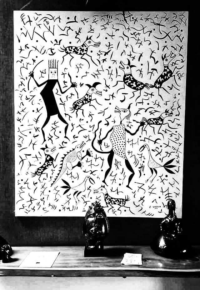 Hanging on the wall is a work of art by Eduardo Segovia.