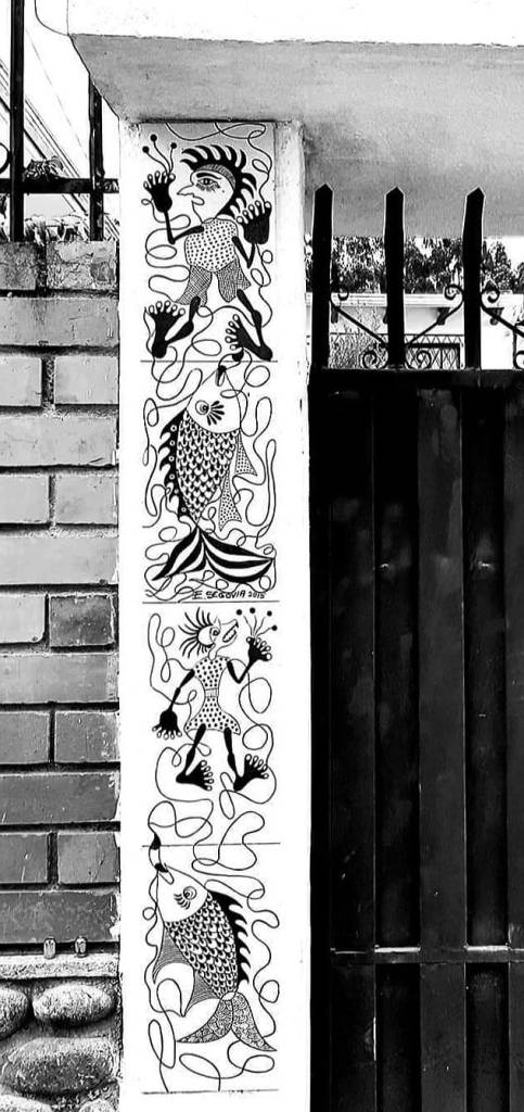 On the wall of Ivan Encalada Pottery Studio in Area 45.