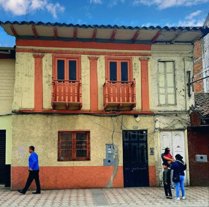 The outer façade is made of brick, and the internal walls are made of adobe, brick, and bahareque.