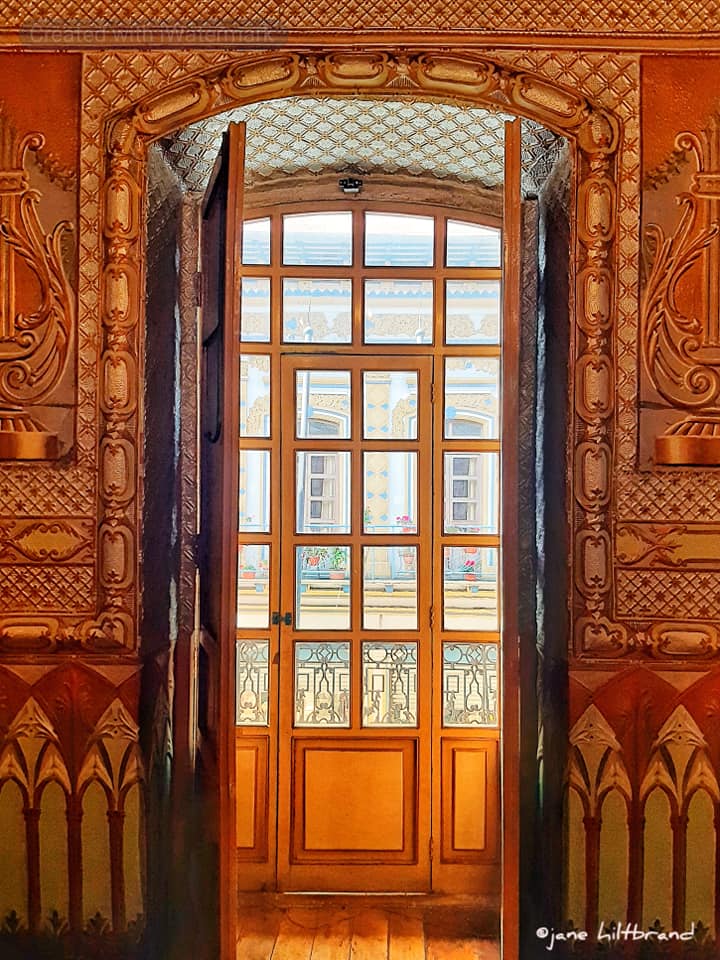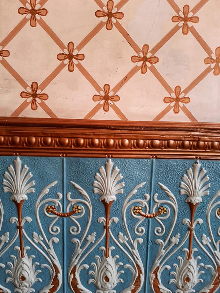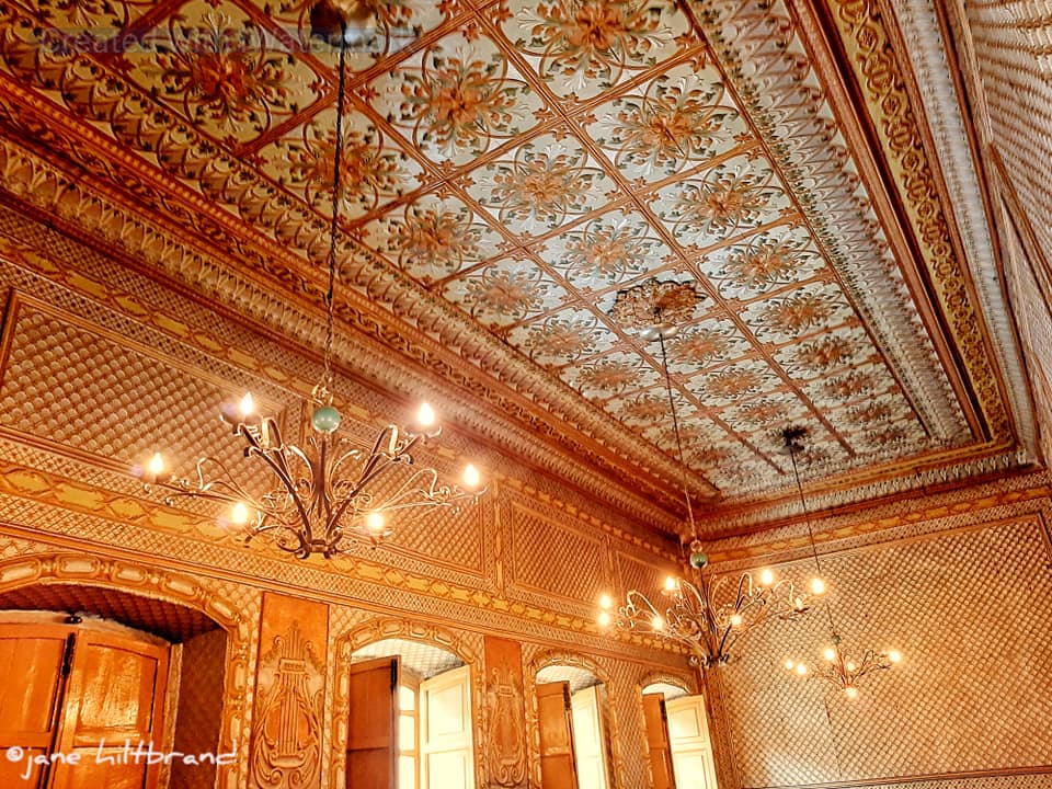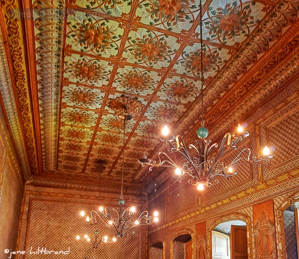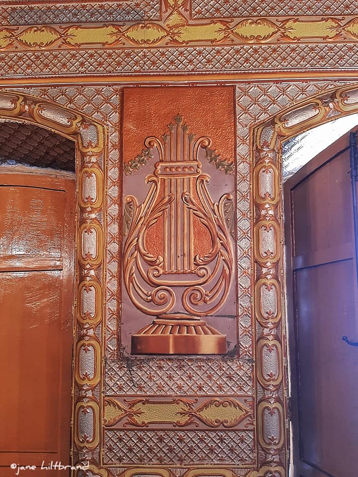 The entire shop is covered with polychrome brass on the ceilings and walls.